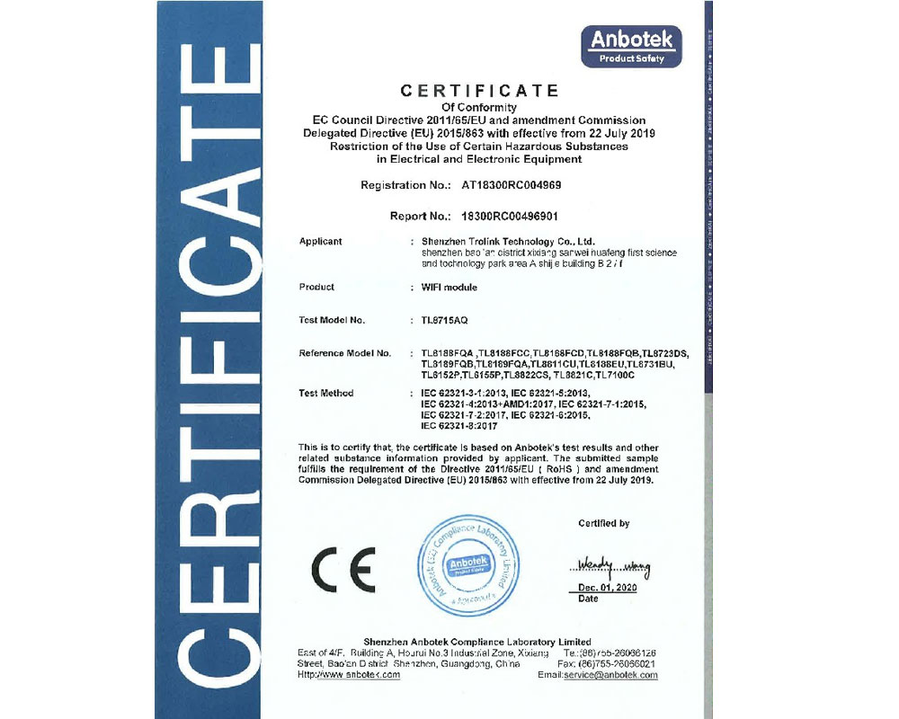成立于2005年,是國家級高新技術企業,深圳市寶安區“規上企業”。專注WiFi模塊,路由模塊、IOT模塊研發和生產,承接OEM、ODM訂單。公司自主研發、生產和銷售。通過ISO9001質量管理體系認證。擁有標準化SMT流水生產線,全新雅馬哈高速貼片機多臺,擁有IQ flex、極致匯儀,WiFi、藍牙自動測試儀多臺,擁有自動化測試機器多臺。獲得多項知識產權及FCC、CE、Telec等多個國際技術認證。擁有多位軟硬件工程師,同主流WiFi芯片原廠REALTEK、MTK、高通保持良好合作關系。
